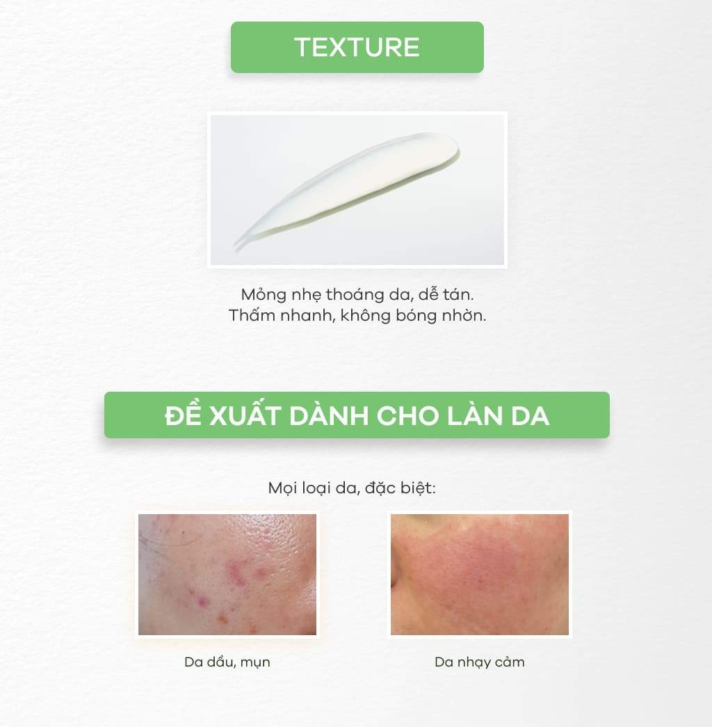 THÍCH HỢP CHO: Mọi loại da, đặc biệt da dầu, mụn, nhạy cảm